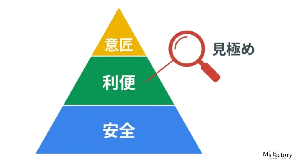 「素敵なデザイン」と「暮らしやすいデザイン」は必ずしも一致しません。エクステリアリフォームで最も多い失敗は、見た目の良さだけで決めてしまい、実際に使い始めてから機能性の欠如に気づくパターンです。ここでは、生活に根ざしたデザイン設計のポイントを解説します。