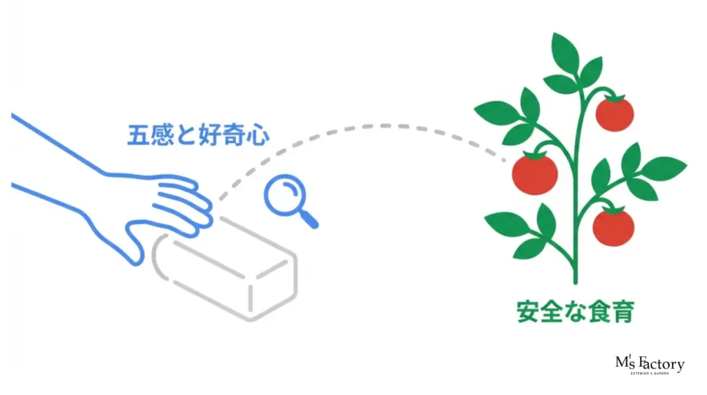 単に「見る」だけでなく、触ったり嗅いだりできる植物を配置することで、子供の興味はより長く持続します。