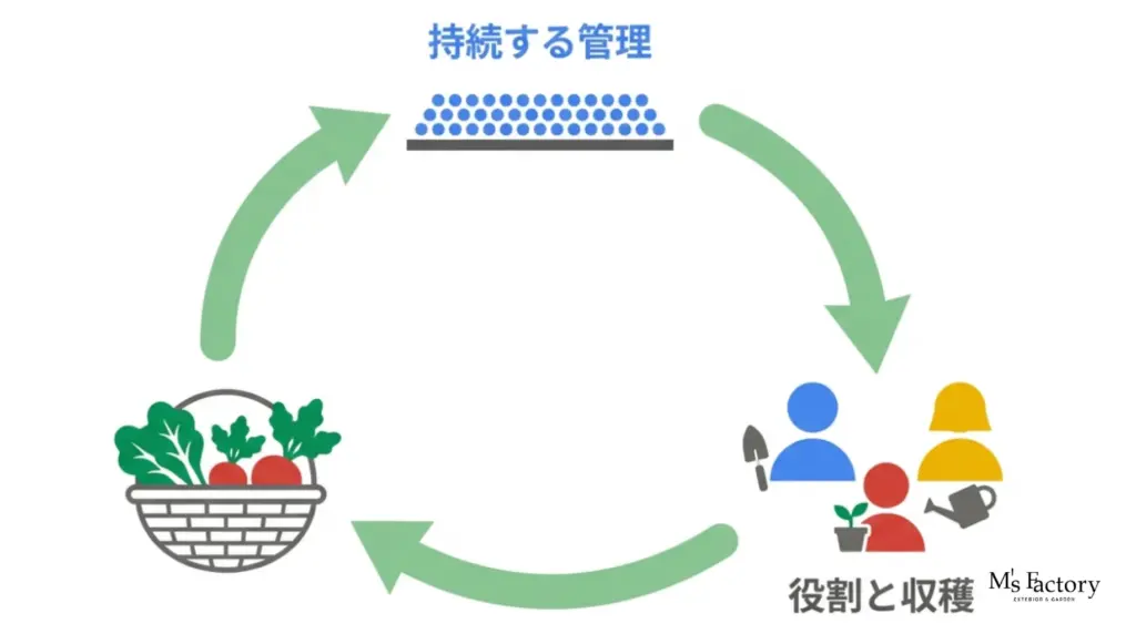 「何を植えたいか」「どんな庭にしたいか」を定期的に話し合う機会を設けることで、共通のゴールが明確になります。