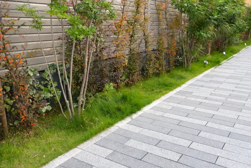 ・横ライン(ボーダー): 空間を「水平方向」に拡張して見せる効果があります。敷地が広く見え、安定感と落ち着きを与えます。一般的なモダンガーデンで最も採用されるスタイルです。