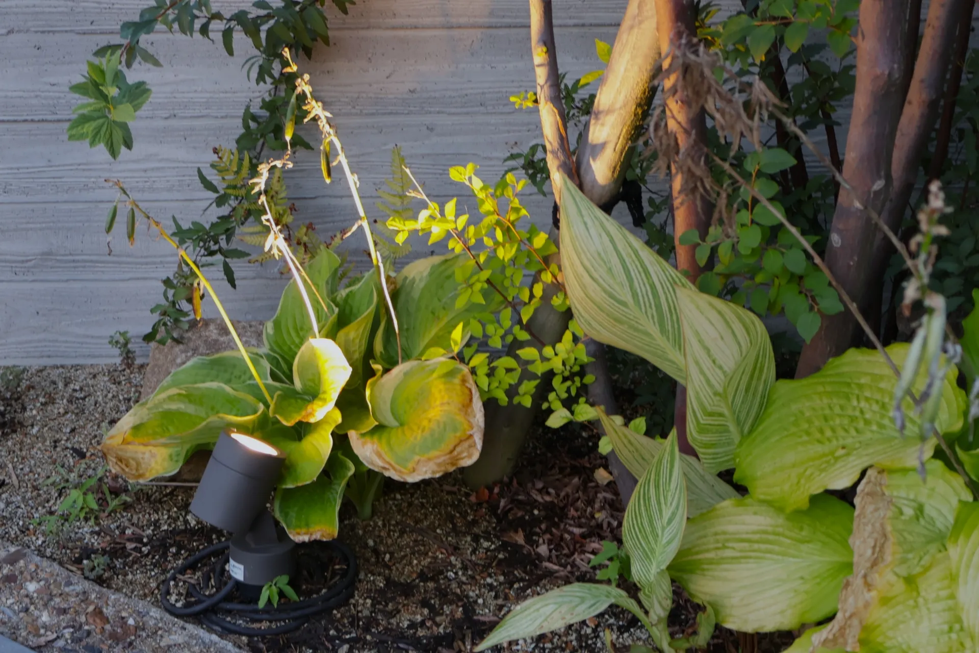 - 計算された照明計画: 夜になると、下からのライトアップで木々のシルエットが壁に美しく浮かび上がります。これは、室内から見ても楽しめる「夜の絵画」となり、一日の終わりに最高の癒やしを提供します。