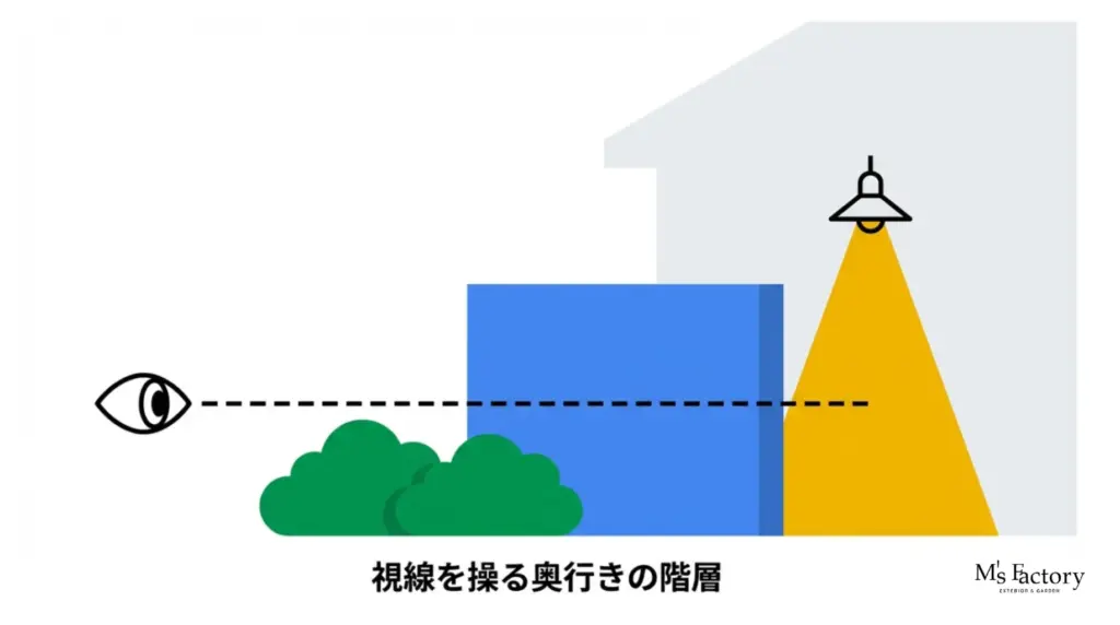 - パスライト(下方向の光): アプローチの足元を優しく照らします。光源が直接目に入らないようにすることで、眩しさを抑えつつ安全性を確保します。