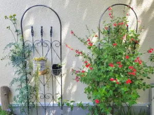 例えば、設置したばかりの木製フェンスやパーゴラは、やがてその色が抜け、趣のあるシルバーグレーへと変化していきます。敷き詰めた石畳やレンガは、その隙間や表面に少しずつ苔がむし、しっとりとした風情を醸し出します。アイアン製のアーチやトレリスには、やがて錆が浮かび、時の流れを感じさせるアクセントとなります。