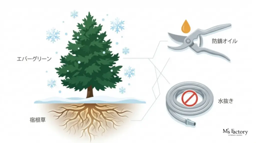 植物の寒さ対策に目が行きがちですが、共に庭を造る「道具」のケアも信州の冬を越す上では非常に重要です。マイナス10度にもなる環境下では、水分が残った道具が凍結して破損したり、湿気で錆びが急激に進んだりします。春のガーデニングシーズンを最高の状態でスタートさせるために、12月に入る前に済ませておくべき「道具の冬ごもり」について解説します。