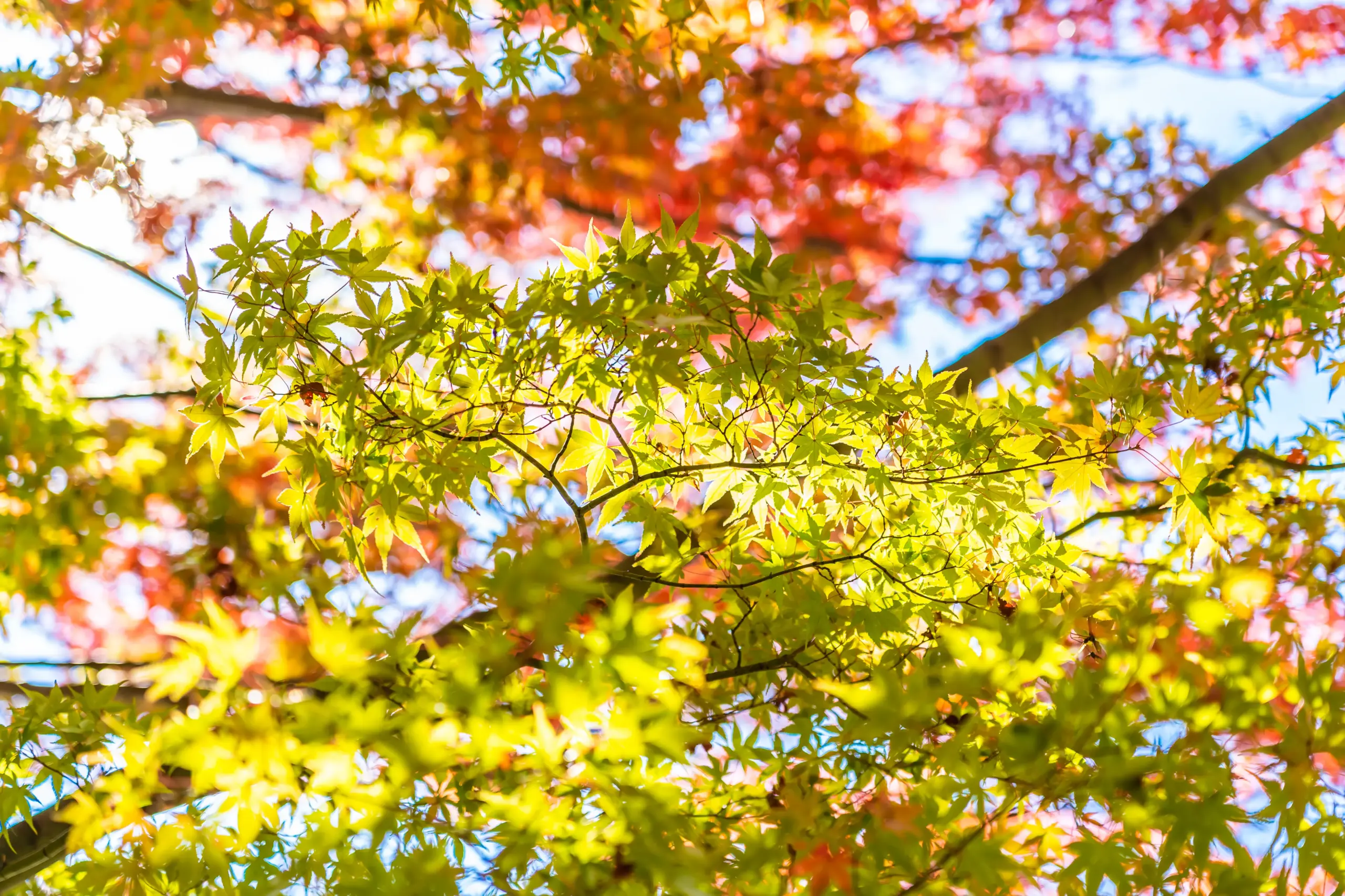 - 晩成の深紅: イロハモミジやヤマモミジは、朝晩の冷え込みが厳しくなる11月頃、最も鮮やかな色を見せてくれます。