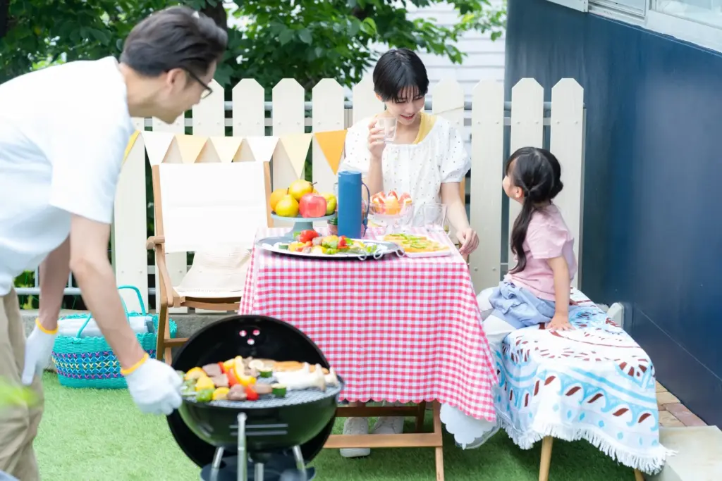 友人を招いてパーティーを開きたいなら、バーベキューができるスペースを確保したり、屋外用の照明を設置したりすると良いでしょう。音楽を楽しめるように、スピーカーを設置するのもおすすめです。
