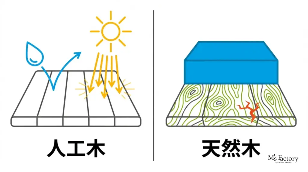 「人工木」と「天然木」それぞれの雪国でのメリット・デメリットと、最適な素材選びのポイント