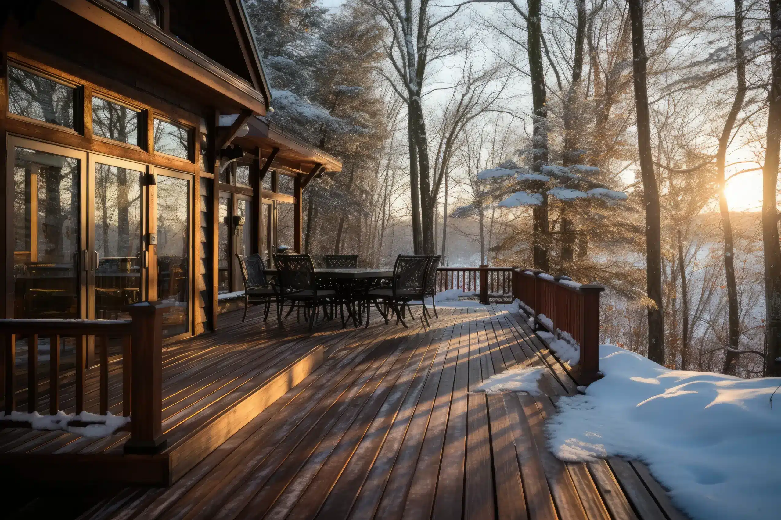 - 窓周りの保護: デッキ上の雪が窓のサッシに触れるのを防ぎ、家本体への浸水や、窓が凍りついて開かなくなるトラブルを予防します。