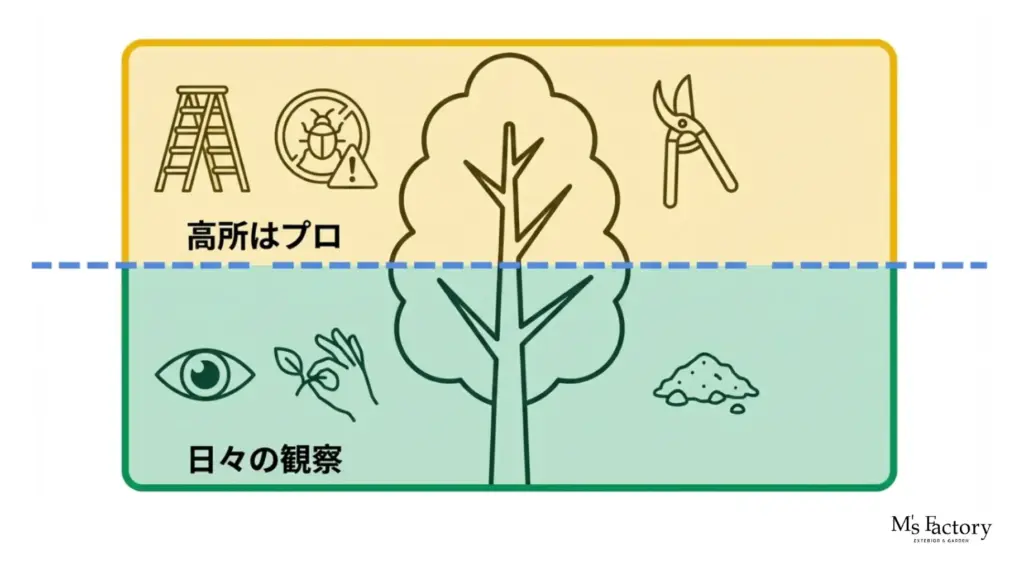 • 部分的な発注: 「高い木だけプロに、低い低木は自分で」という風に、作業内容を絞って発注することで、人件費を抑えられます。